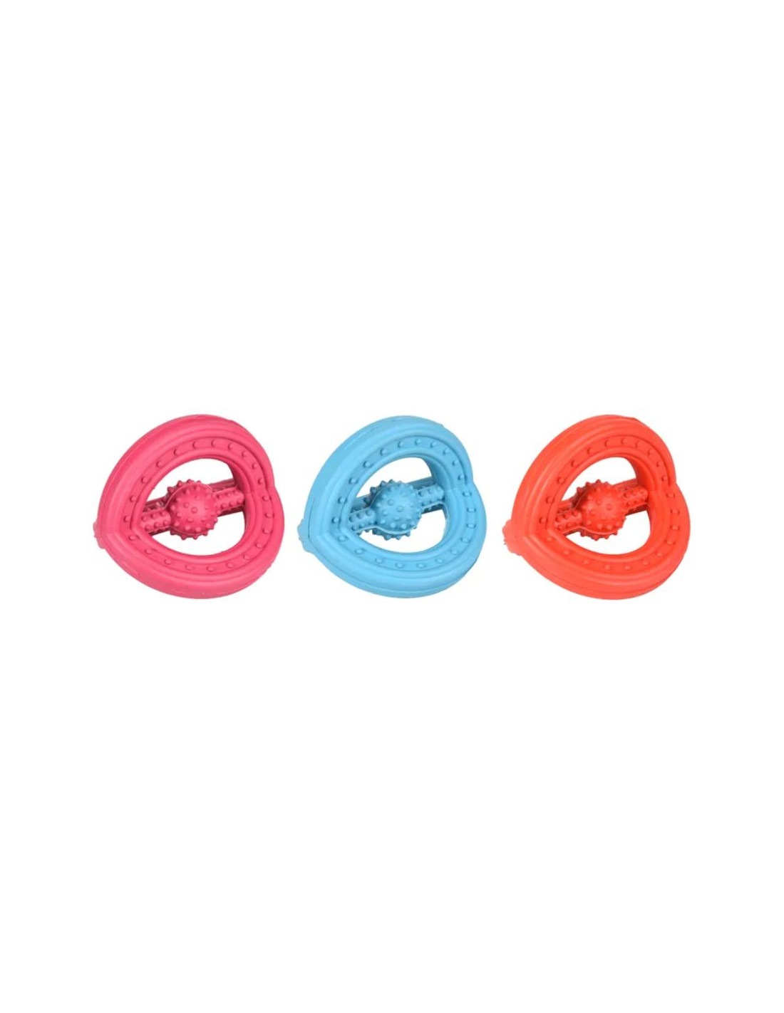 Flamingo Toy Ruffus Tri-ring е издръжлива гумена играчка, произведена от Flamingo специално, за да забавлява и да се грижи за устната хигиена на вашето куче. Изпъкналите елементи нежно почистват плаката и предотвратява появата на зъбен камък.