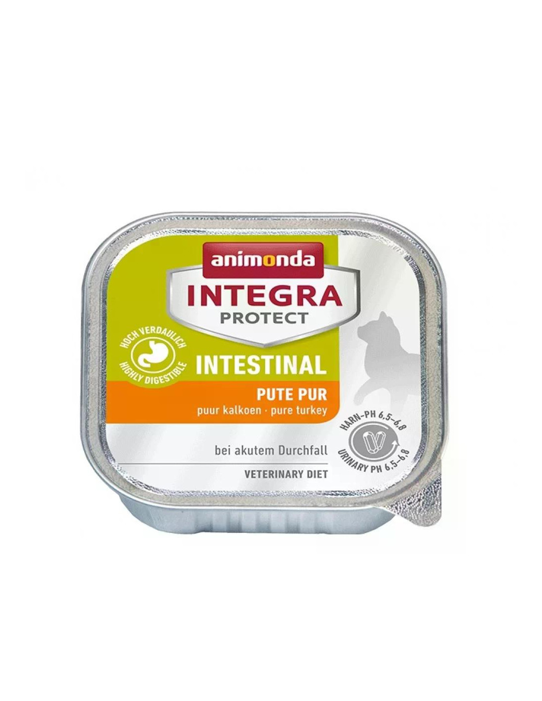 Integra® Protect Intestinal Cat интестинал е специално разработена за котки с остра диария. Лесно смилаемите съставки не натоварват стомашночревния тракт. Увеличеното съдържание на електролити балансира загубите от диарията. В същото време тази храна предотвратява образуването на струвитни и оксалатни камъни. Храната поддържа благоприятно рН на урината, което предотвратява образуването на оксалатни и струвитни камъни в урината на котките.